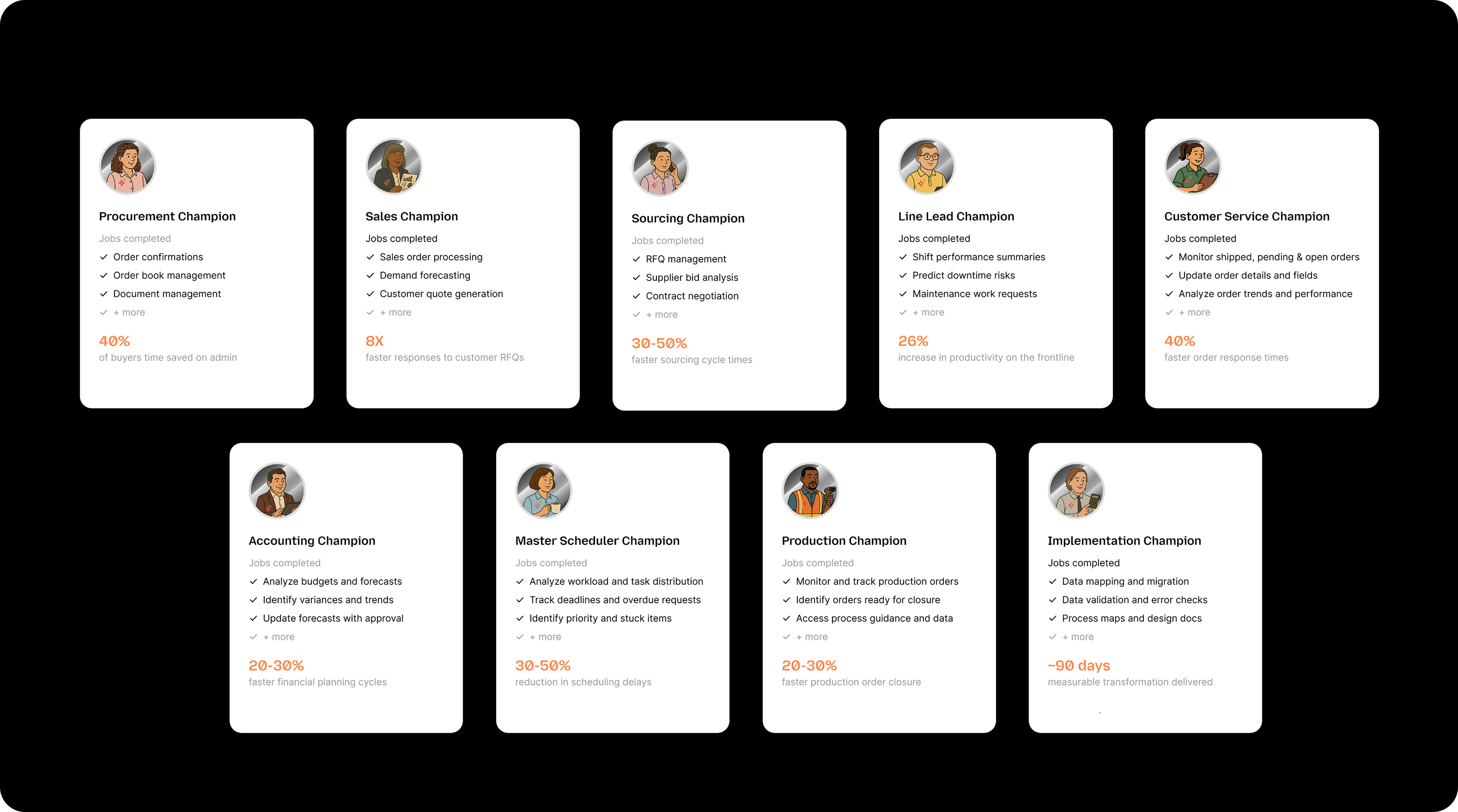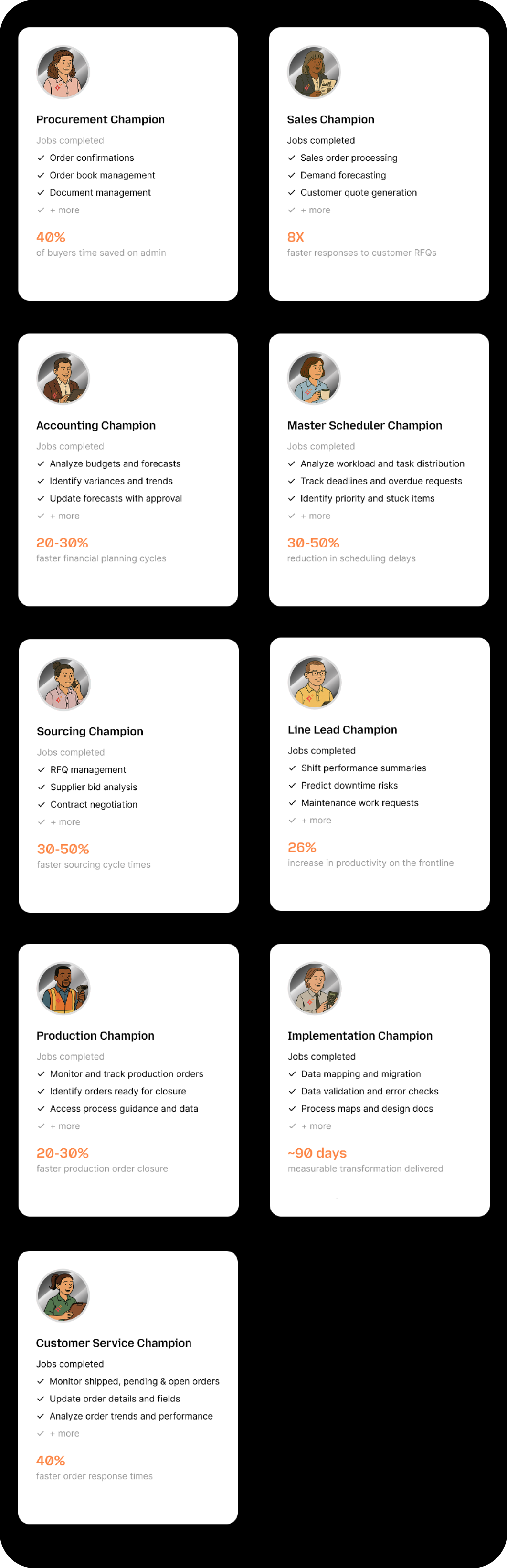 ChampionAI is QAD’s intelligence layer, a network of purpose-built agents that automate, optimize and accelerate how you work.